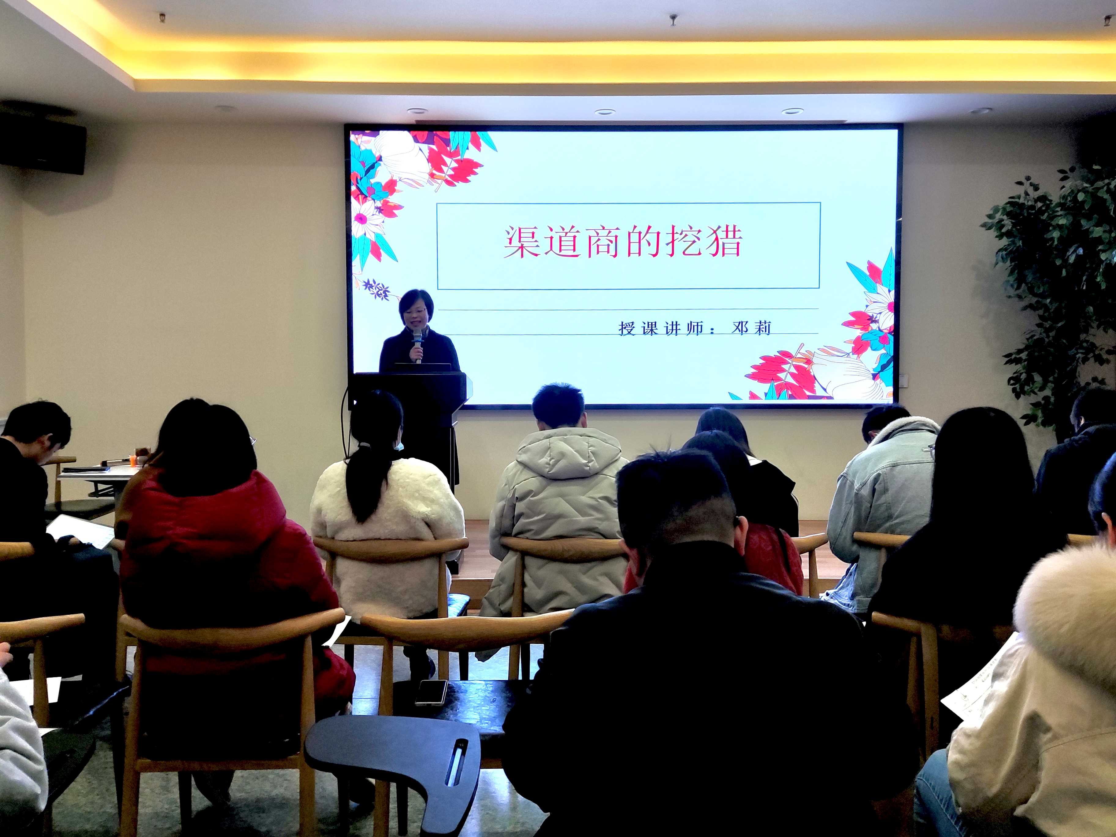 本次培訓分為兩個獨立的課題,第一個課題是由公司檢驗部銷售主管鄧莉帶來的《渠道商的挖獵》的授課,分別從渠道的定位、搭建、挖獵三個層面進行剖析: