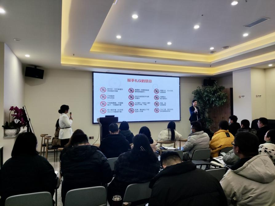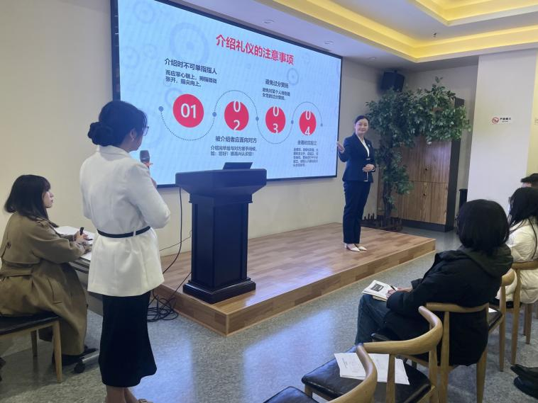 本次培訓(xùn)邀請(qǐng)到成都博尚會(huì)展服務(wù)有限公司負(fù)責(zé)人羅卉頤老師為大家?guī)砹擞嘘P(guān)商務(wù)禮儀的授課,課程主要從商務(wù)接待禮儀和個(gè)人職業(yè)形象兩大板塊進(jìn)行講解。