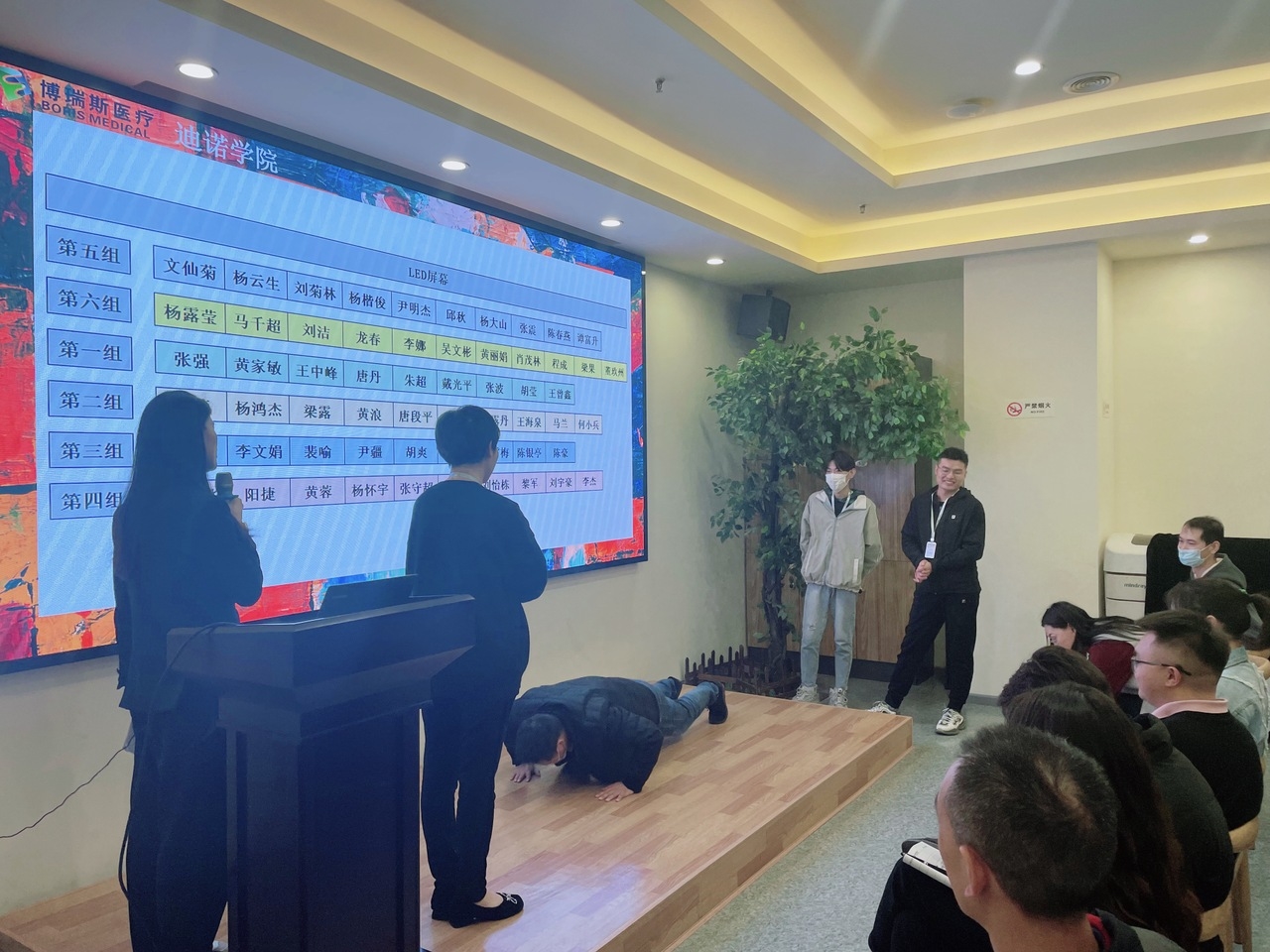 結(jié)合上一場培訓(xùn)紀(jì)律的情況統(tǒng)計(jì),依然有學(xué)員因曠課導(dǎo)致扣分,在本場培訓(xùn)的懲罰環(huán)節(jié)中,對比上一場加大了懲罰力度。在培訓(xùn)正式開課之前主持人邀請了存在扣分的學(xué)習(xí)小組成員集體上臺,并由學(xué)習(xí)組長接受體能懲罰,同時,為了讓學(xué)員們更加感同身受,還增設(shè)了燈光和音樂效果,希望通過這樣的方式讓參訓(xùn)學(xué)員能感受到團(tuán)隊(duì)的意義和集體意識,請大家能嚴(yán)格督促自己,建立大局意識,同企業(yè)一起“合力精耕★平穩(wěn)發(fā)展”!
