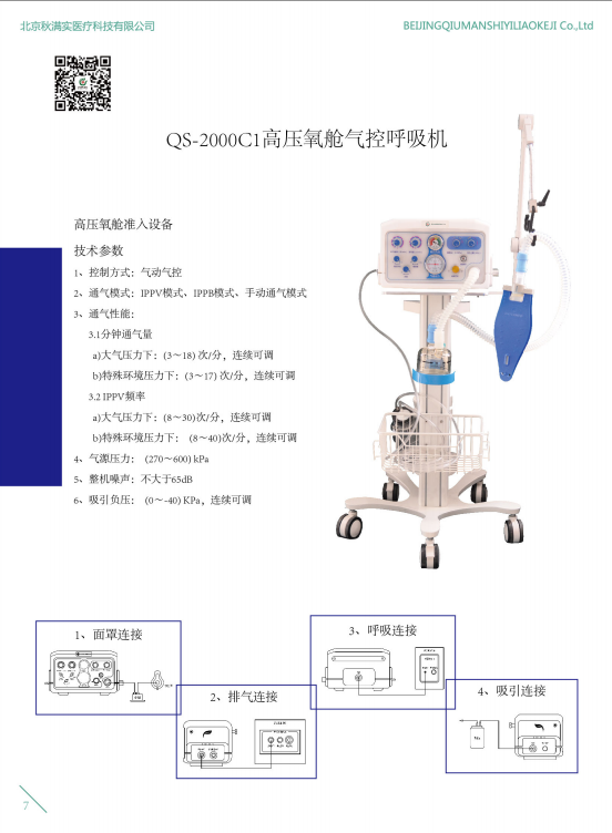 北京秋滿實 QS-2000C1 高壓氧艙氣控呼吸機(jī)